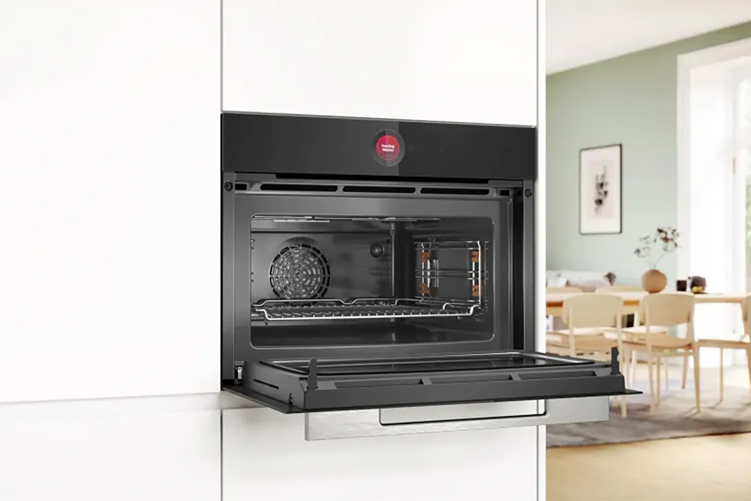 Встраиваемый духовой шкаф Bosch CMG7241B1 модель Premium класса с микроволнами. Инновационное цифровое кольцо управления и цветной TFT-Touchdisplay с иллюстрациями блюд и текстом. В зависимости от выбора программы дополнительно предлагаются инструкции по приготовлению. Особенность компактной модели 8 серии - полное автоматическое приготовление меню Bosch Assist. Меню, в котором предлагается большой выбор блюд. Дистанционное управление через мобильное приложение Home Connect позволяет удаленно диагностировать и управлять духовым шкафом с СВЧ.