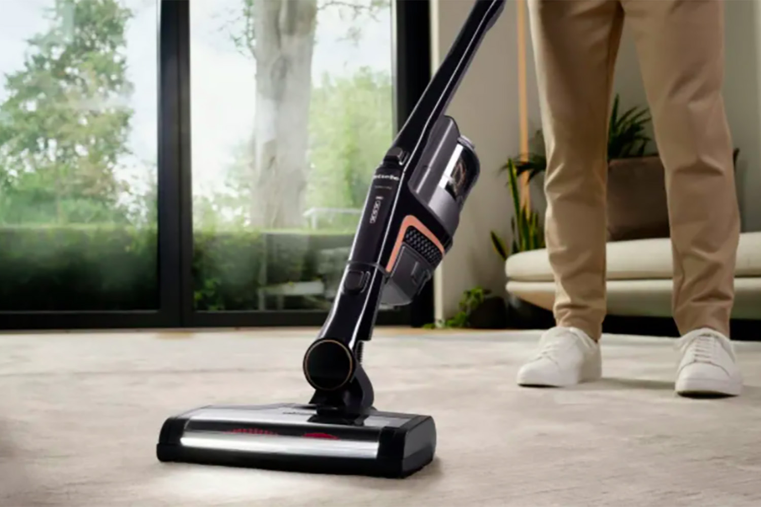 Технология Vortex генерирует воздушный поток скоростью больше 100 км/ч. Все загрязнения разделяются на фракции и удерживаются в контейнере объемом 0,5 л. Система фильтрации HEPA AirClean Lifetime задерживает самые мелкие частицы пыли. Продолжительность работы от аккумулятора — 60 минут, индикатор заряда подскажет, когда придет время поставить прибор на зарядку. Предусмотрена удобная система парковки — вертикальная, а также набор для настенного крепления.